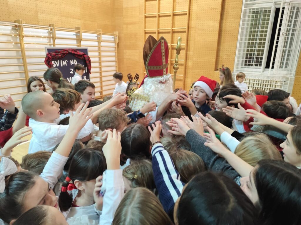 4. prosinca, uoči blagdana Sv. Nikole, održana je božićna priredba u školskoj dvorani. Bilo je glume, pjesme, lutkarskih predstava, plesa, svirke, recitacije i puno veselja. Mališane je ipak najviše razveselio posjet Svetog Nikole i vreća puna slatkiša.