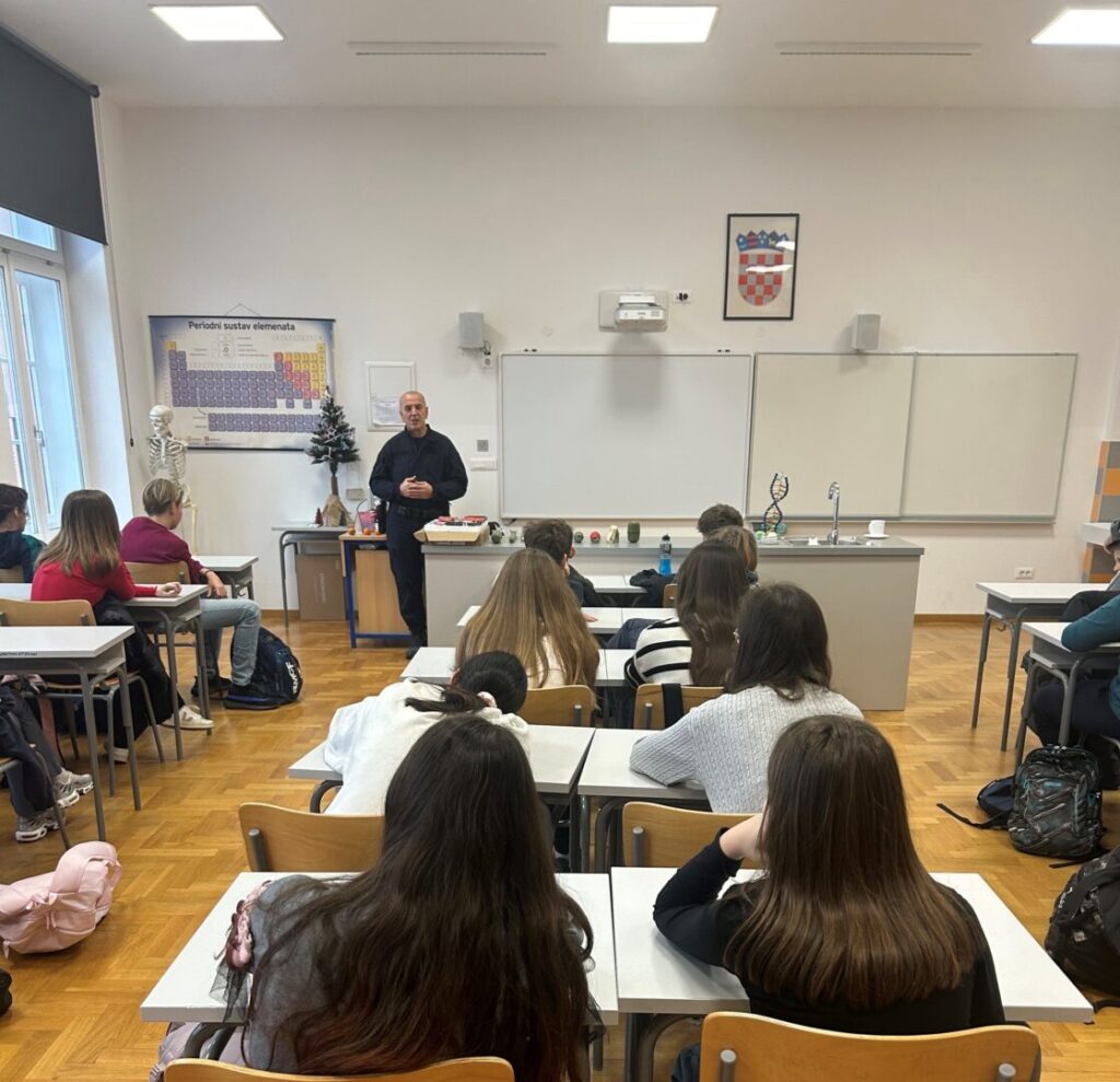 U ponedjeljak 8. prosinca 2025. učenici petih i šestih razreda ugostili su djelatnika Protueksplozijske službe MUP-a koji je učenicima održao korisnu edukaciju o opasnim eksplozivnim napravama i pirotehničkim sredstvima u sklopu preventivnog projekta Znam što je, ne diram, opasno je.