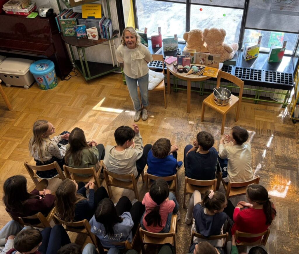 21. travnja ponovno smo bili gosti u obližnjoj Dječjoj knjižnici M2 s učenicima trećih razreda i prisustvovali  susretu s književnicom Danijelom Pavlek. Autorica nam je predstavila svoju zbirku pjesama “Knjigu recepata za putovanje kroz odrastanje” koja na zanimljiv način nudi “recepte” za razumijevanje osjećaja i svladavanje svakodnevnih prepreka. Kroz svoje stihove na zabavan način predočila nam je kako se može “skuhati” hrabrost prije ispita ili „začiniti“ svakodnevica vedrinom te što učiniti kad nas preplavi tuga. Objasnila nam je da odrastanje jako nalikuje kuhanju – ponekad je slatko, ponekad zagori, a često nam nedostaje baš onaj jedan ključni začin da sve ispadne kako treba.