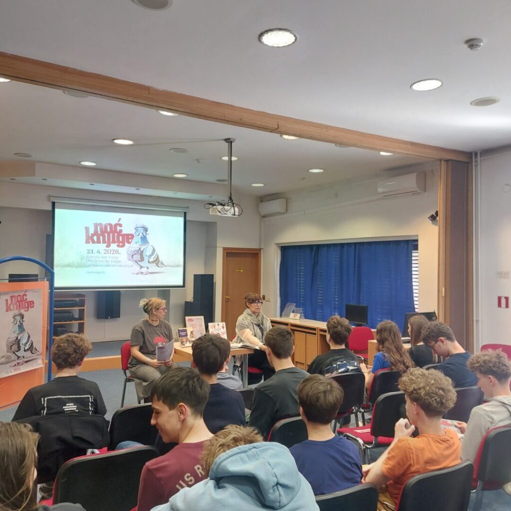Dana 23.04.2026. u sklopu manifestacije Noć knjige posjetili smo Centar za dječju knjigu i imali priliku sudjelovati na njihovoj tribini Osmaši pitaju na kojoj je gostovala viša kustosica Memorijalnog prostora Bele i Miroslava Krleže gđa. Vesna Vukelić Horvatić, voditeljica zbirke. Iako se Centar prvenstveno bavi književnošću za mlade, ugostio nas je i pružio priliku upoznati najvećeg hrvatskog pisca 20. stoljeća po kojem naša škola nosi ime i čiji je on bio učenik.Kustosica nam je kroz priču približila svakodnevicu bračnog para Krleža u njihovu domu na Gvozdu. Učenici su kroz pitanja koja su postavljali kustosici naučili puno o slavnoj Beli i Miroslavu Krleži.