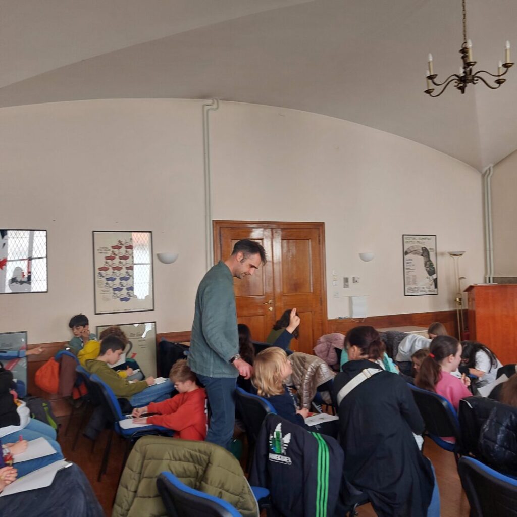 U utorak, 24. ožujka 2026. godine,  Društvo hrvatskih pisaca otvorilo je svoja vrata našim učenicima četvrtih razreda i omogućilo susret s priznatim ilustratorom Dominikom Vukovićem u sklopu njihove tribine Slikovačnice.